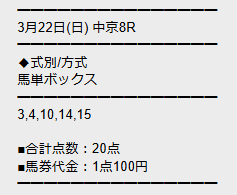 2番人気→8番人気→3番人気の決着をわずか6点で読み当ててしまいました。