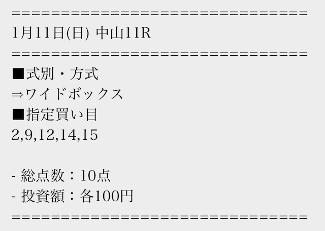 | 推奨馬券代 | 1点100円 |