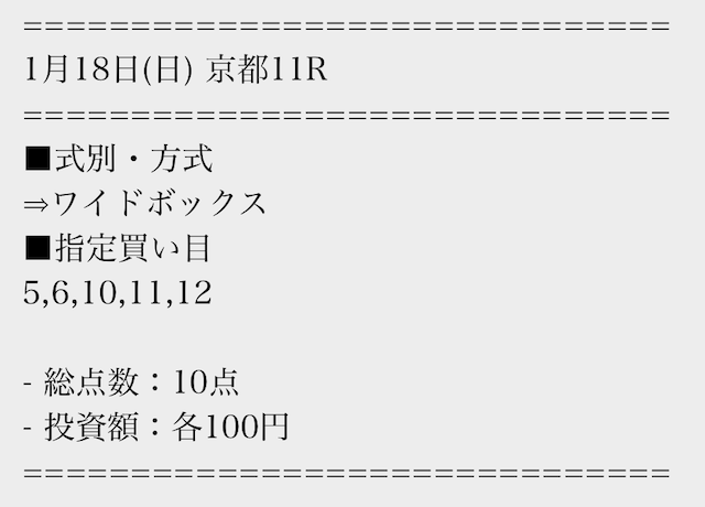 | 2026/1/18 京都11R | 0円 | -10,000円 | |