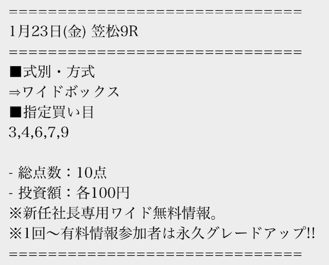 最初は無料情報だけで様子を見ていましたが、的中が続いて気になり有料に参加しました。