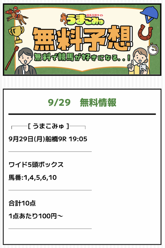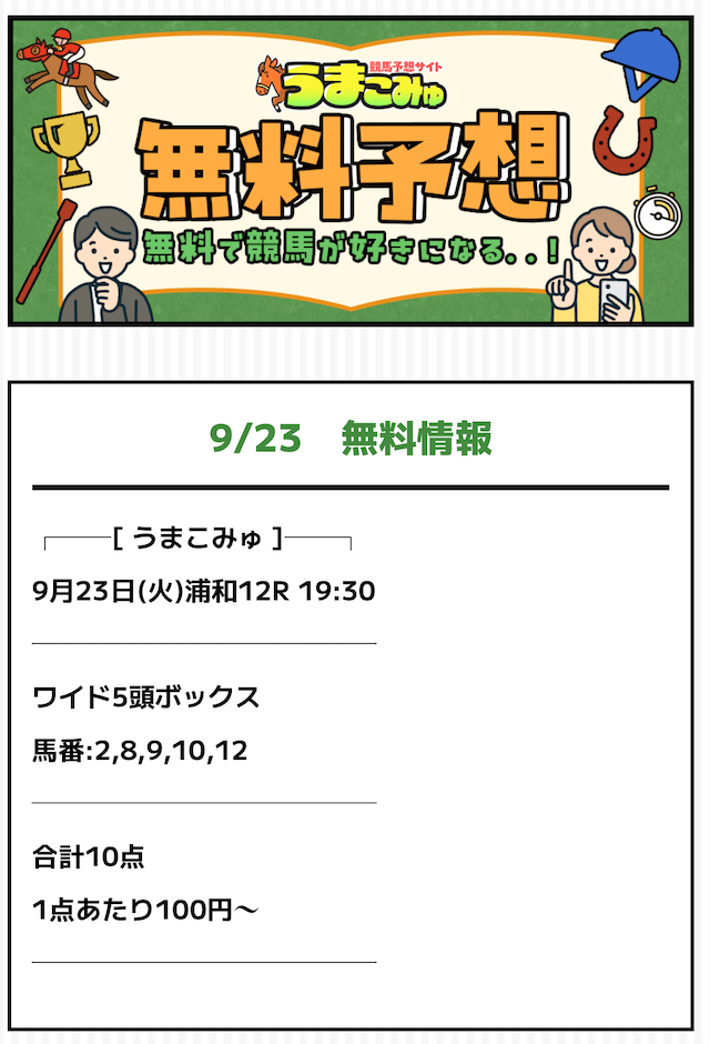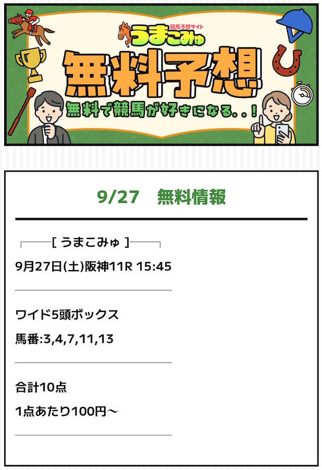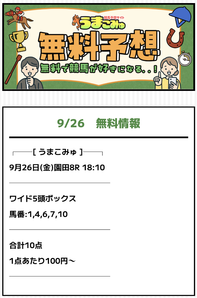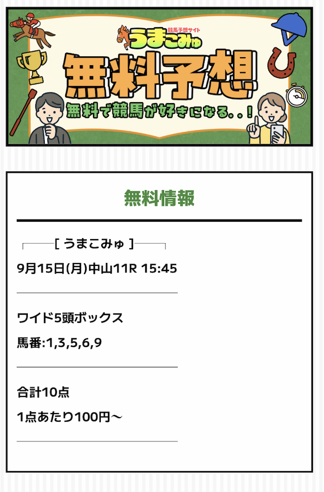 ※タップするとうまこみゅの無料予想の詳細を確認できます。