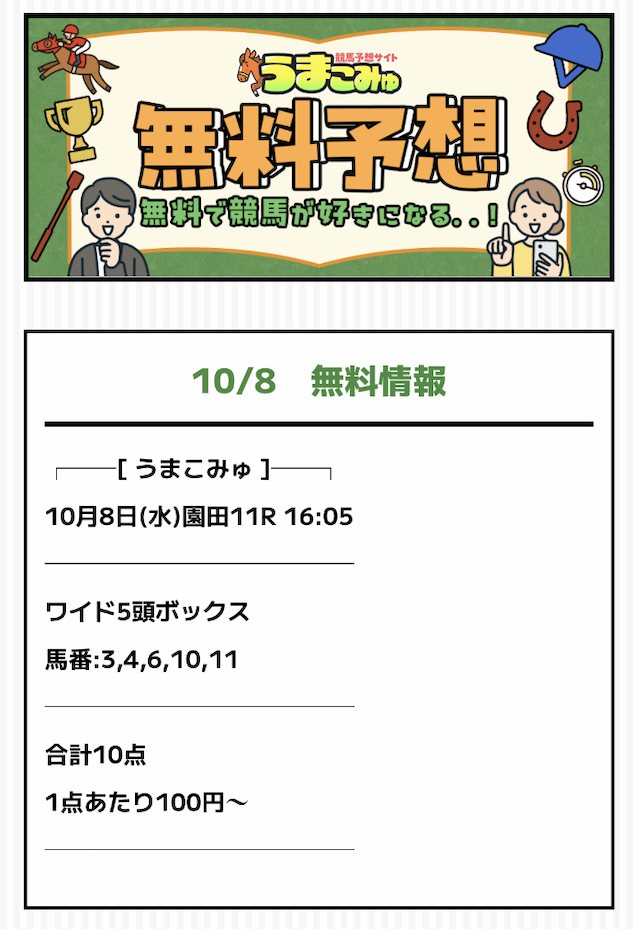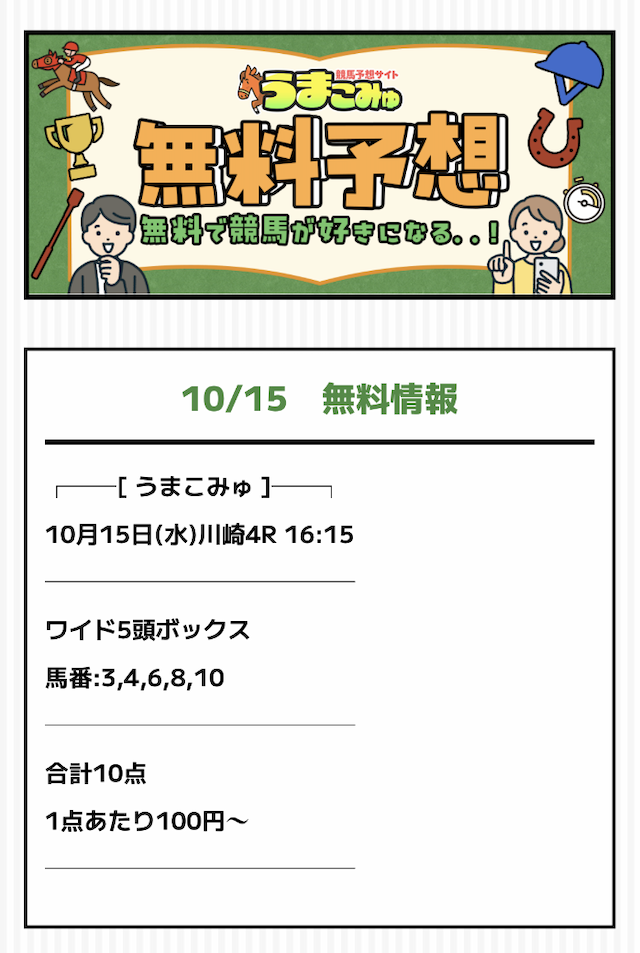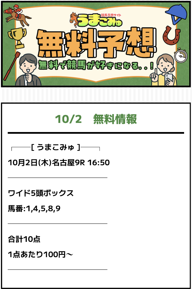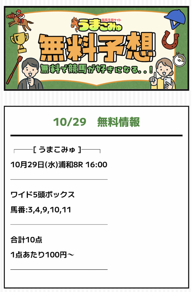 果たして、うまこみゅの無料予想は本当に当たるのでしょうか・・・