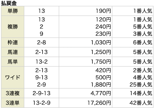 | 馬券代1点 | 400円 |