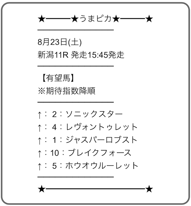 2025年7月27日新潟6Rの予想に参加!