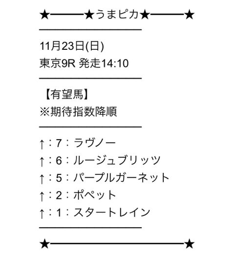 やはりうまピカの期待指数は誰が使っても精度が高いことに気づくレベル。