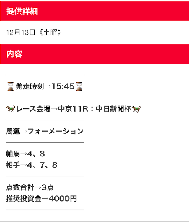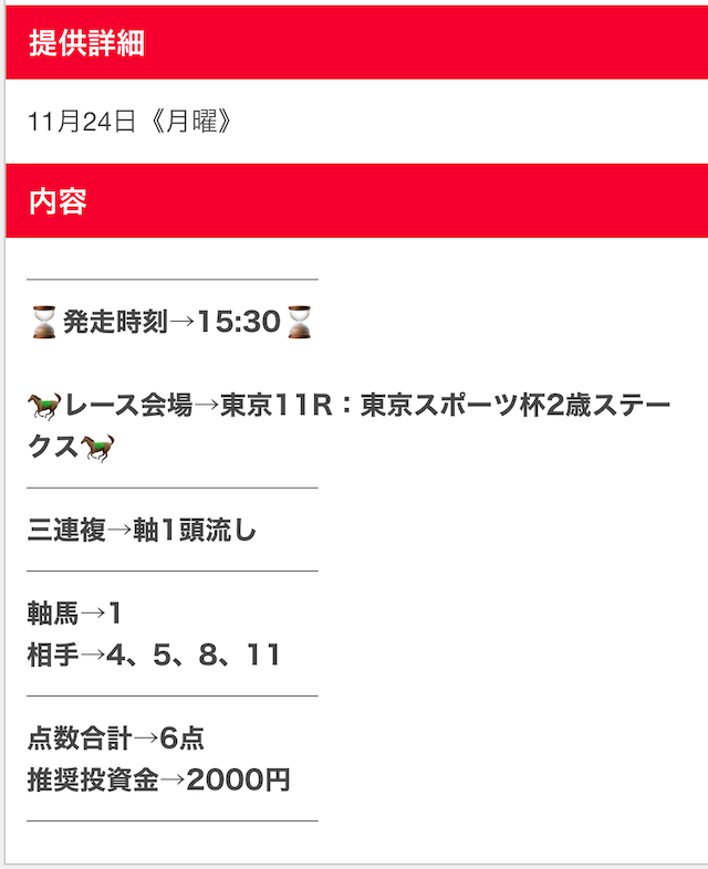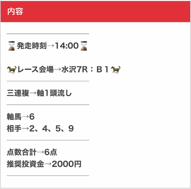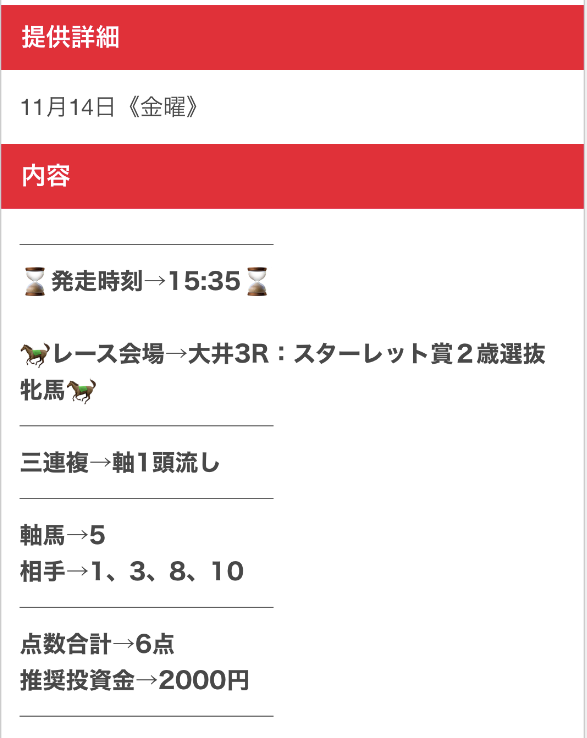 | 予想の確認方法 | 会員ページの[無料予想情報] |