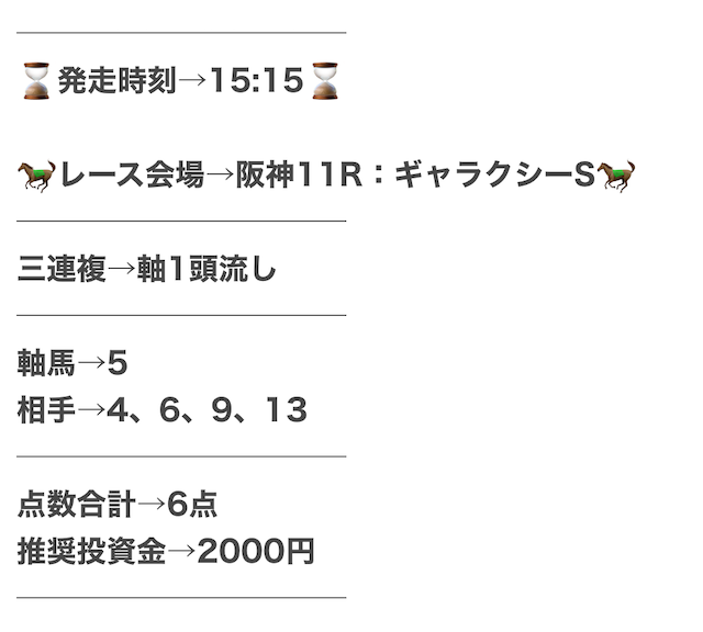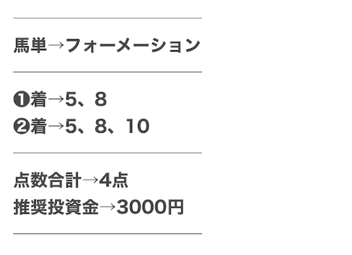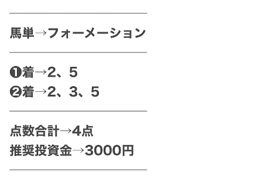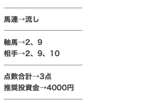 | 推奨馬券代 | 2,000円前後 |