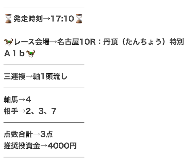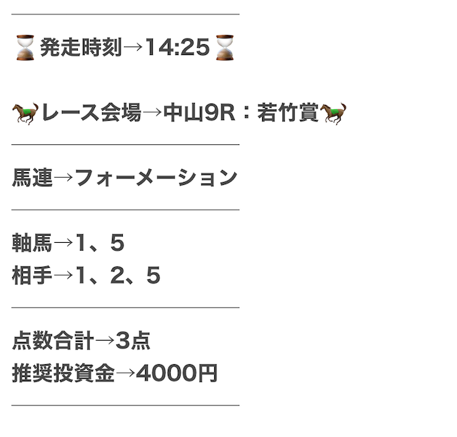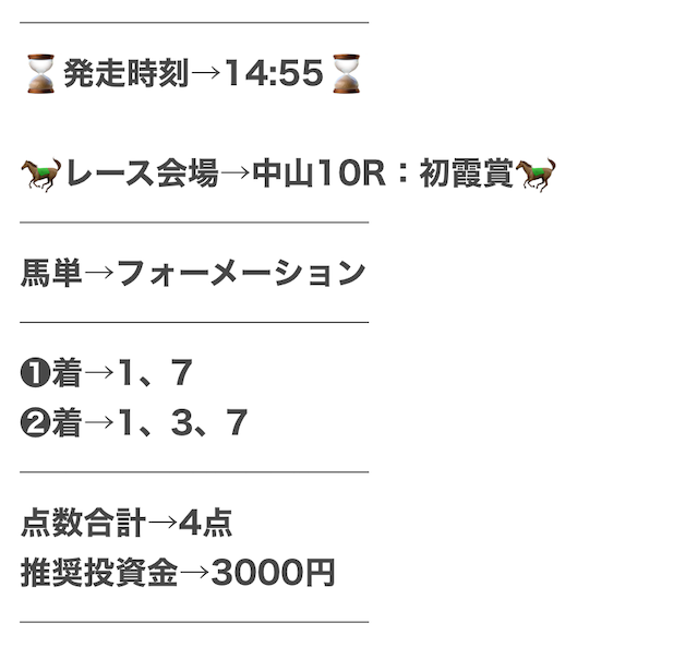 実際に、公開された買い目がこちら。