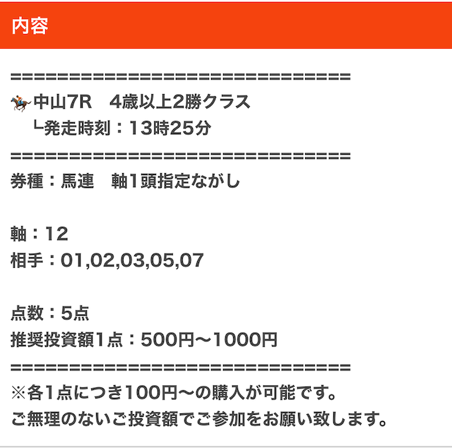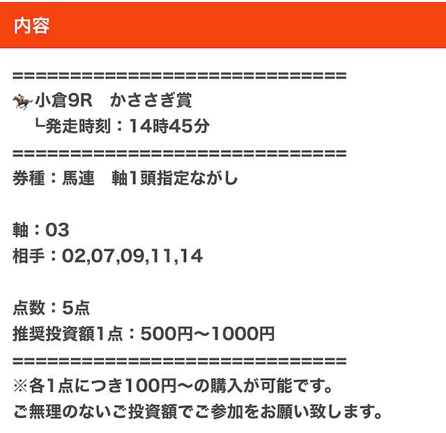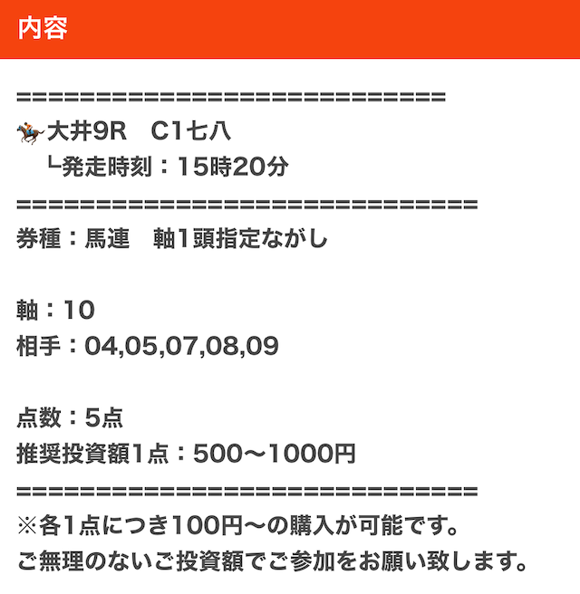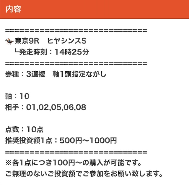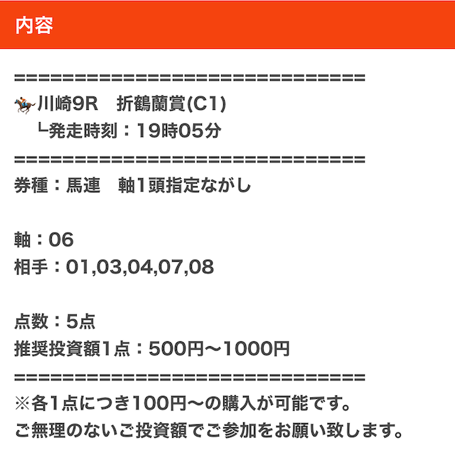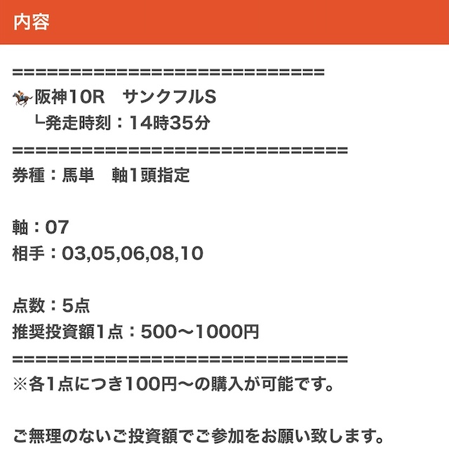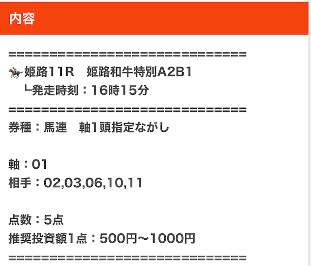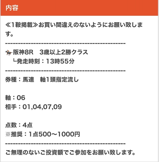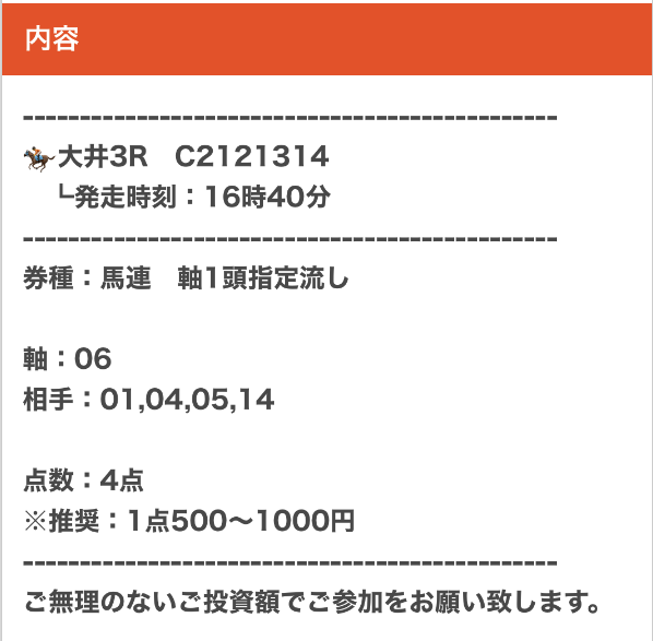 実際に公開された買い目がこちら。
