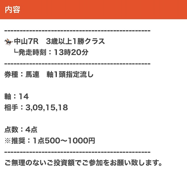 | 馬券代1点 | 1,000円 |