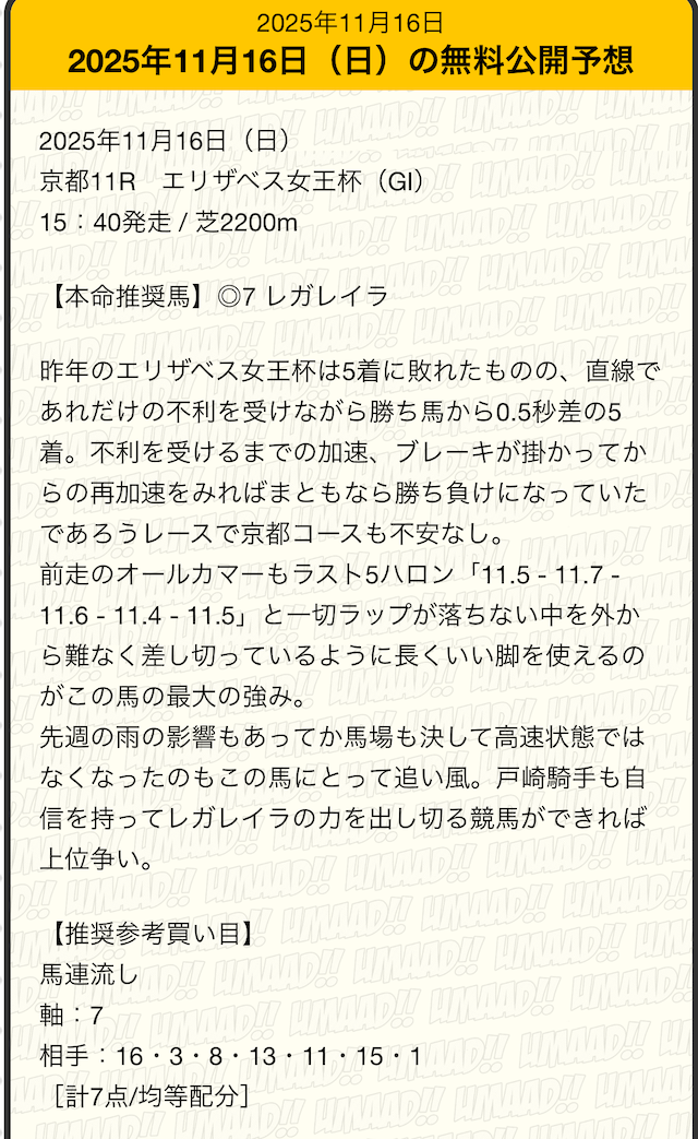 ここからは実際にうまあどの無料予想に参加していきます。