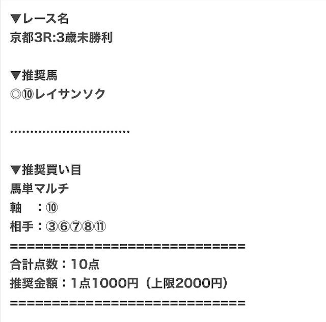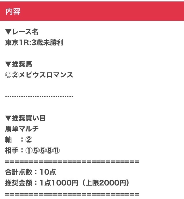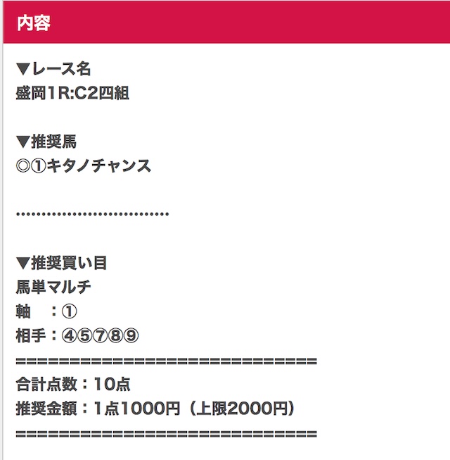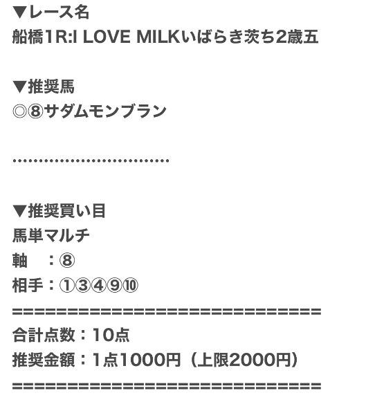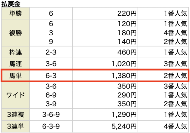 | 馬券代1点 | 1,000円 |