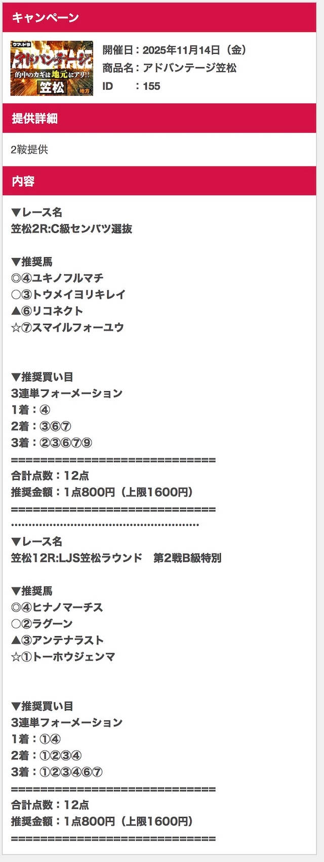 笠松2R,笠松12Rの2鞍の予想が公開されました。