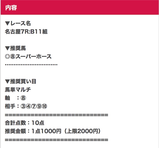 | 対象レース | 名古屋7R |