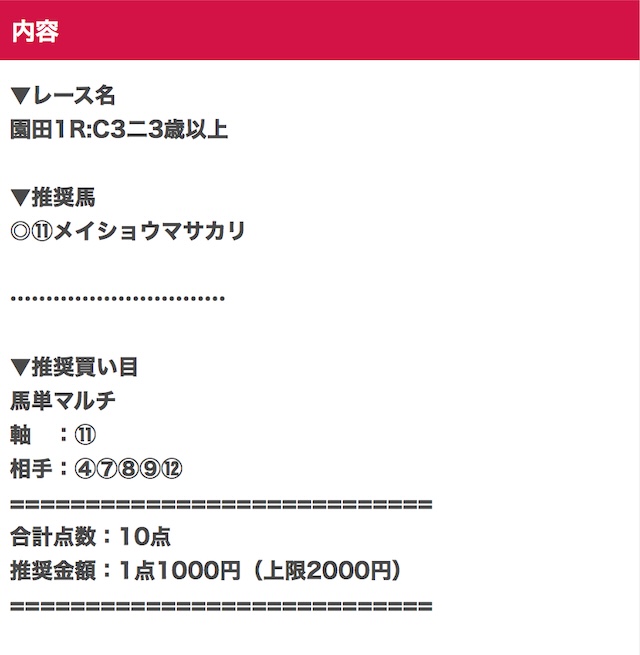 | 予想の確認方法 | 会員ページの[無料予想情報] |