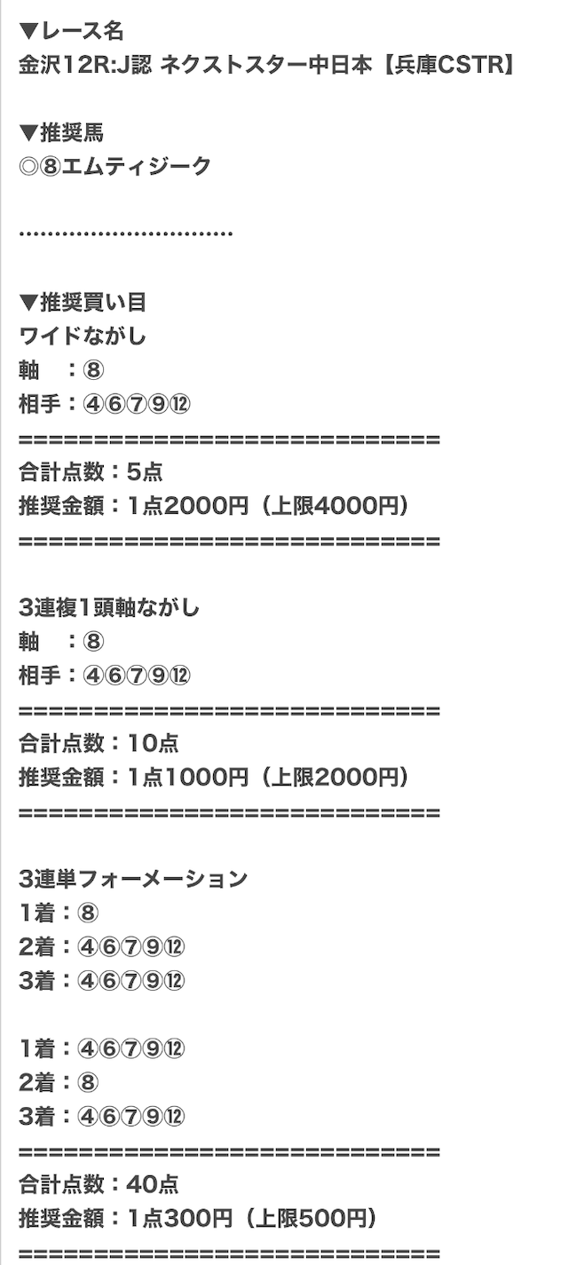 | 推奨馬券代 | レースによって異なる |