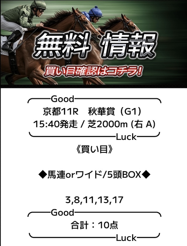 有料情報は3連単の買い目が公開されましたが、20点くらいで万馬券当ててくれました。