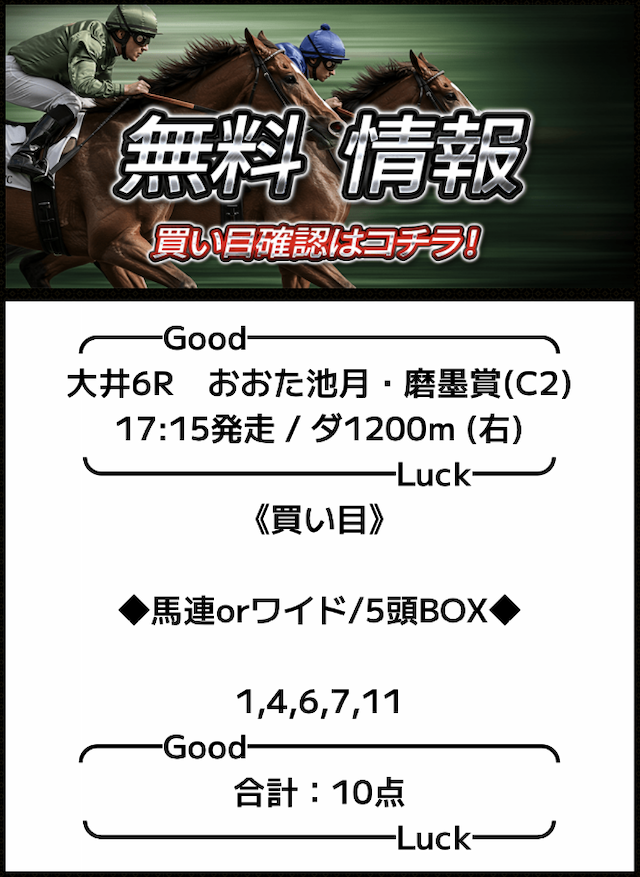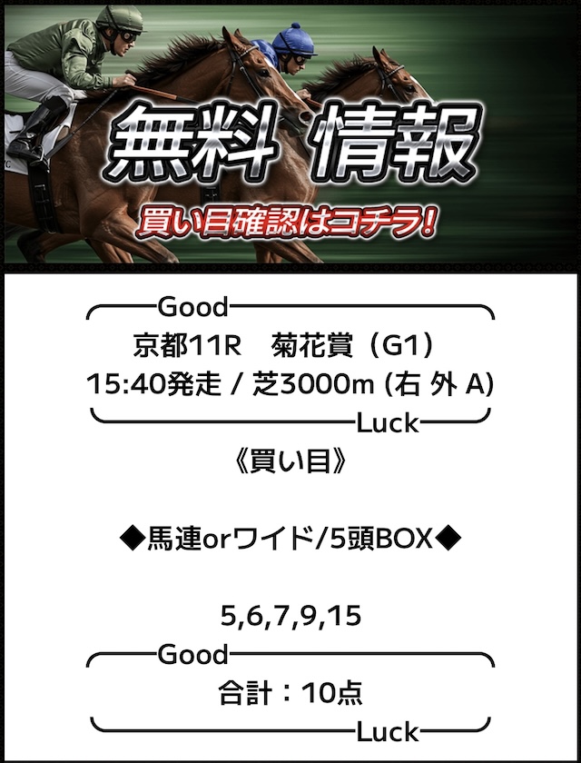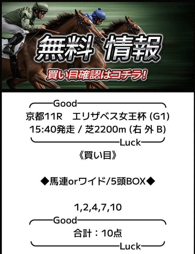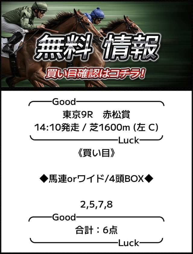 無料で頂ける予想なのに、的中率が高く5月はだいぶ勝たせていただきました。