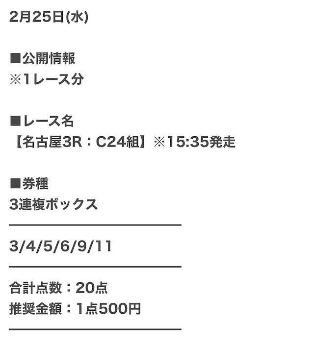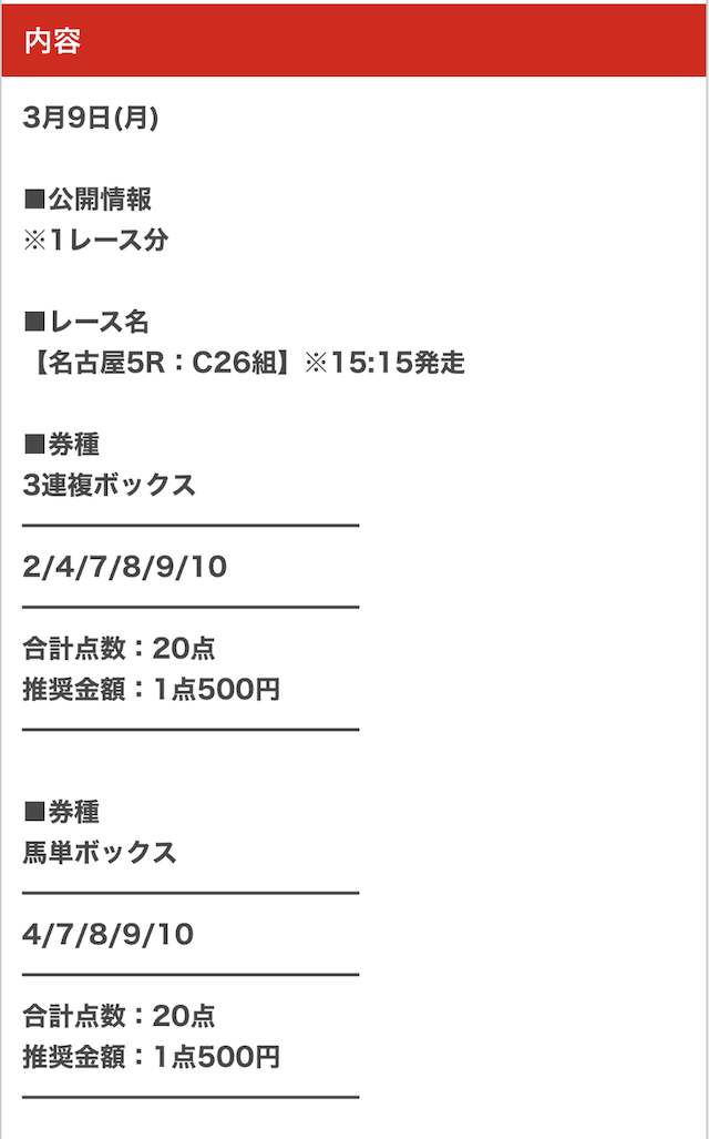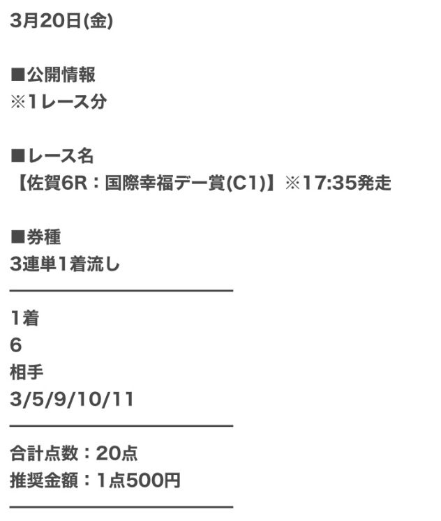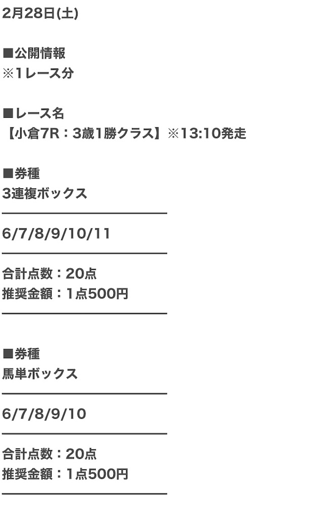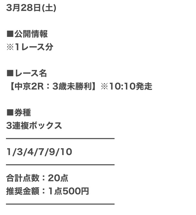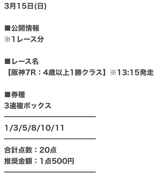 | 推奨馬券代 | 1点300円〜 |