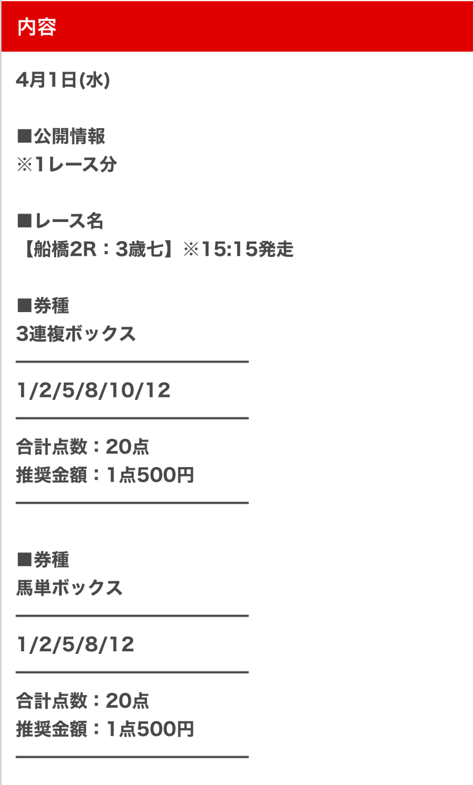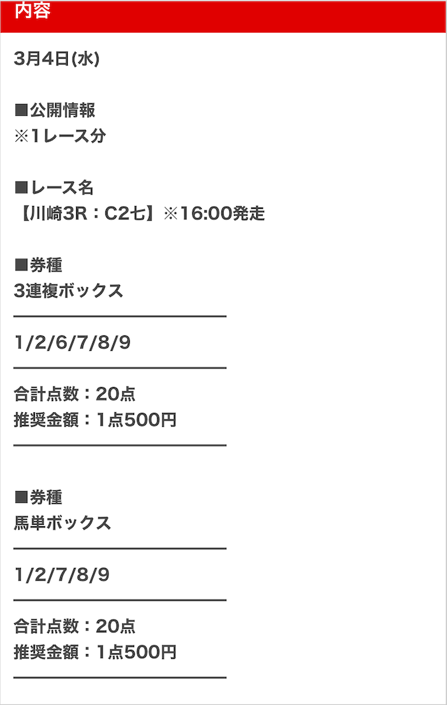 様々な券種で予想が公開される点が気に入っています。