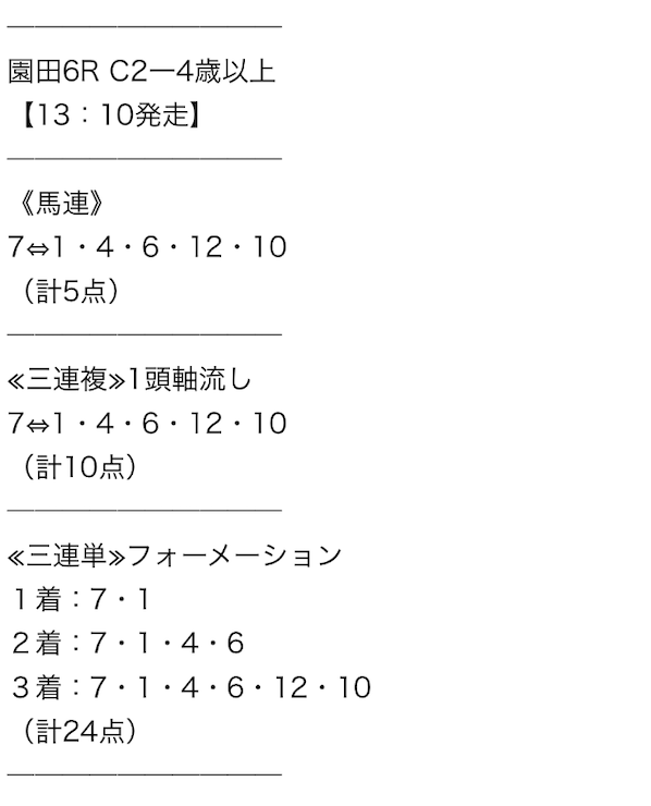 3連単の買い目だけでなく馬連や3連複の買い目も公開してるから非常に使いやすい。レースに応じて自分で券種決めたいタイプだから競馬裏街道はまじでお世話になってます。