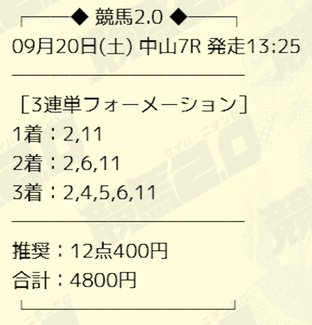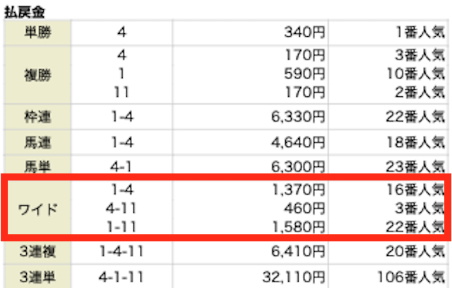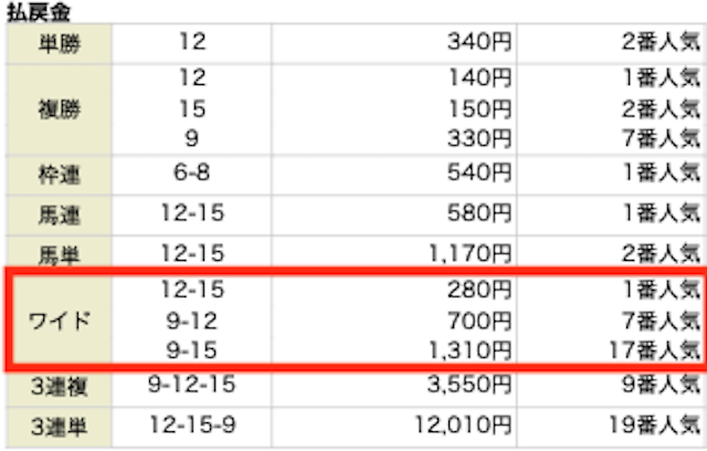 6番人気→4番人気→2番人気の決着をたった12点で読み切りました。