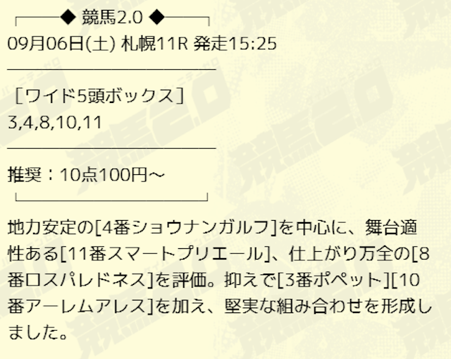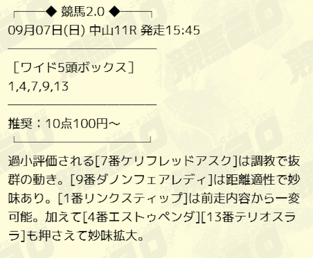 無料予想でコレってことは、有料予想はもっと稼げるんだろうな。