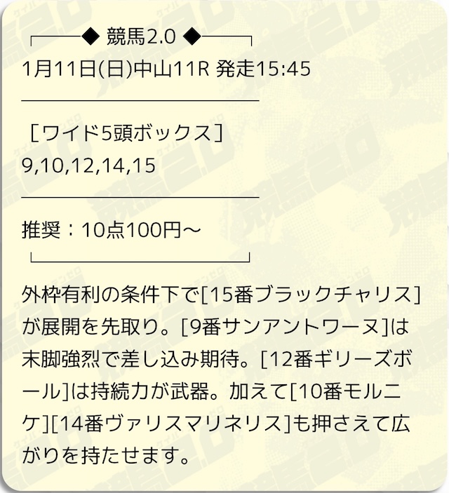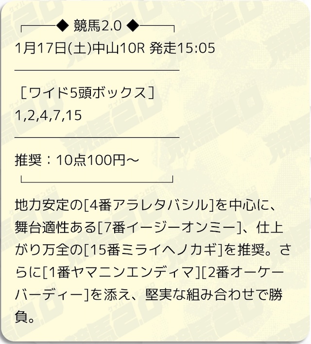 | 予想の券種 | ワイド |