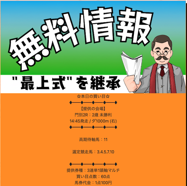 3連単を安定して読み切ることができる最強のサイト。短期的な利用で大金を得たいのであれば、最上式勝馬投票券で間違いないでしょう。