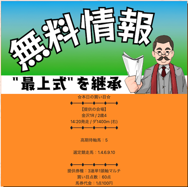 それでは実際に最上式勝馬投票券の有料プランを購入し検証していきます。