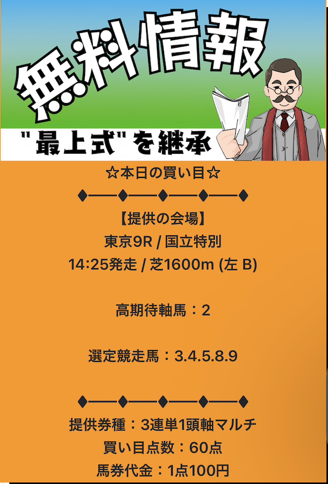 有料予想はやや高額なので、まずは無料予想から利用をはじめてみると良いでしょう。
