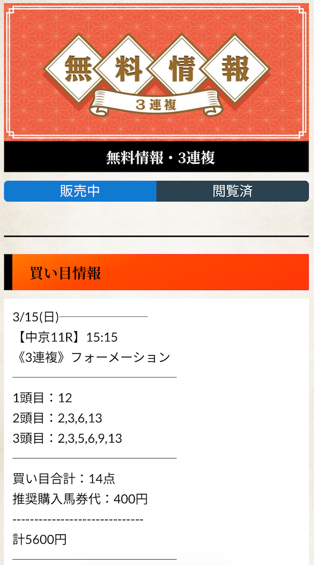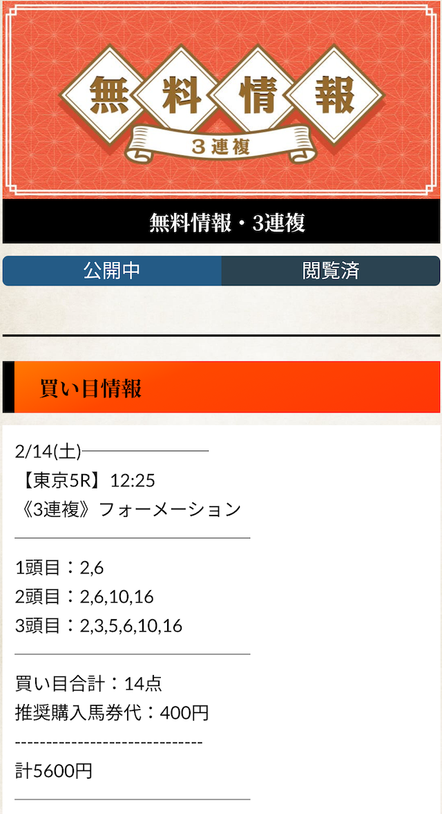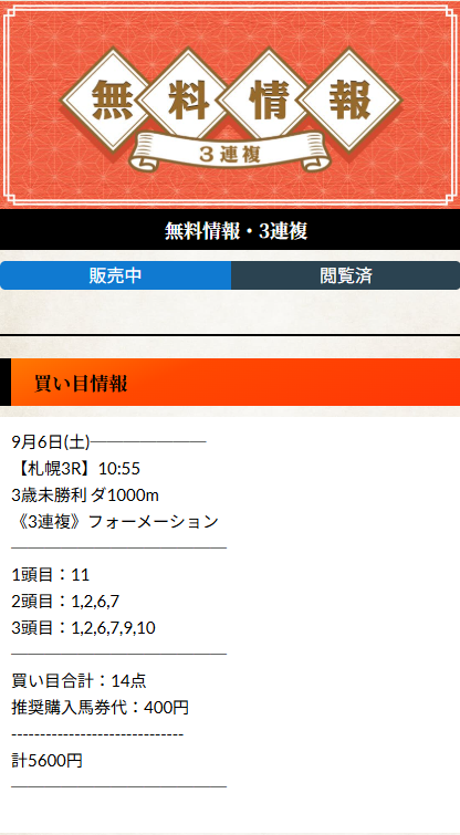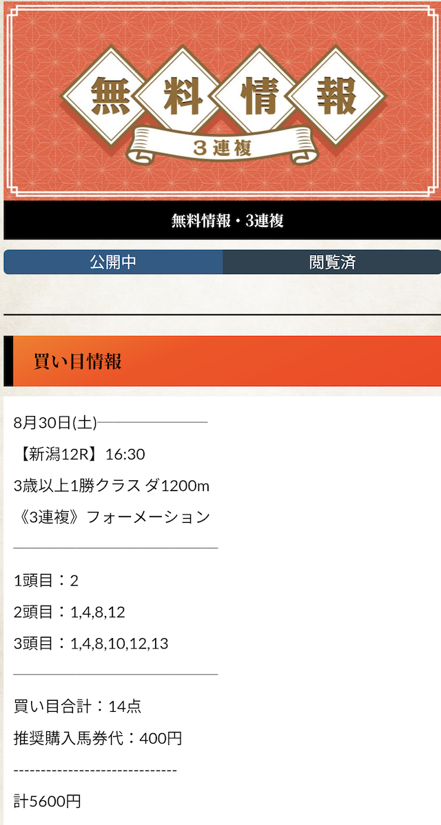 登録してから無料予想のみお世話になってますが、1ヶ月使って払戻金15万円でしたw