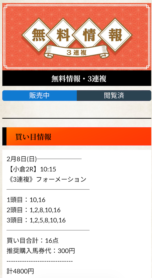 無料予想と有料予想を上手く使い分けて、利益を伸ばして下さい。